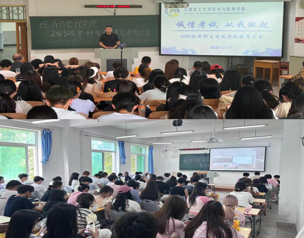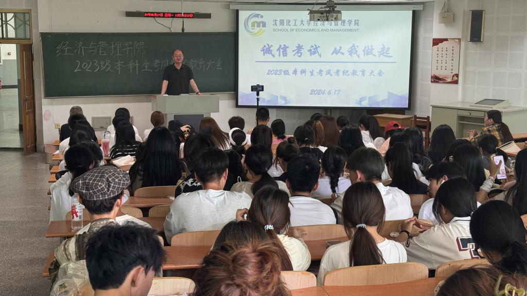为进一步加强考风考纪教育,深入推进beat365官网学风建设工作,倡导“严肃考风考纪、弘扬优良学风、文明诚信应考”,增强同学们的诚信考试意识,保证考试的公正性,端正同学们的学习和考试态度。6月17日下午,“诚信考试,从我做起”2023级本科生考风考纪教育大会在通明楼232、213教室举行,大会由2023级辅导员王怀老师主持,beat·365党委书记李丙文主讲,2023级全体学生参会。