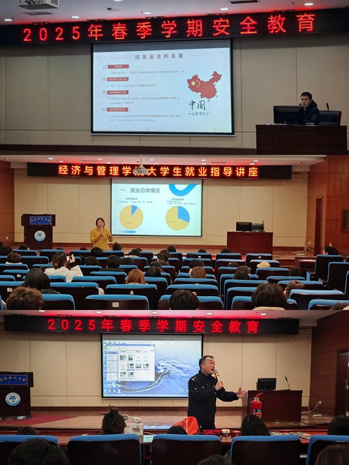 奋楫笃行—“就业指导第一课” 学院党委副书记关婷以翔实的就业数据面向与会师生就当前就业形势进行分析,引用学生典型案例生动形象地为学生讲解如何科学规划职业生涯,为学生解答疑惑,增强就业信心,助力学生扎实走好大学生活中的每一步,实现高质量充分就业。