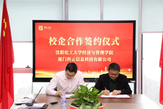 在交流过程中,双方就建立长期稳定的实习基地、开展产学研合作项目以及共同申报科研课题等合作意向进行了探讨,并初步达成了合作框架,并举行了“实习就业基地共建 校企合作”签约仪式,校企双方均表示将积极整合资源,发挥各自优势,为学生创造更多的实习实践机会与就业岗位,实现校企互利共赢、协同发展的目标。沈阳化工大学beat·365副院长刘铁民、教师代表陈丹、徐婧玥,厦门科云信息科技有限公司院校事业部副总经理林英耀、辽宁省总经理胡火坤、科云教育研究院副院长林剑平等参加了签约仪式。