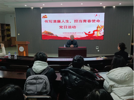 为进一步加强毕业生党员纪律建设,增强廉洁意识,扣好走向社会的“第一粒扣子”,12月13日下午1点,beat·365开展“书写清廉人生,担当青春使命”2025届毕业生党员廉洁从业主题教育活动,学院党委书记李丙文、党委副书记关婷、组织员信莹以及全体2025届研究生毕业生党员参加活动,学院研究生第二党支部书记刘璐主持。