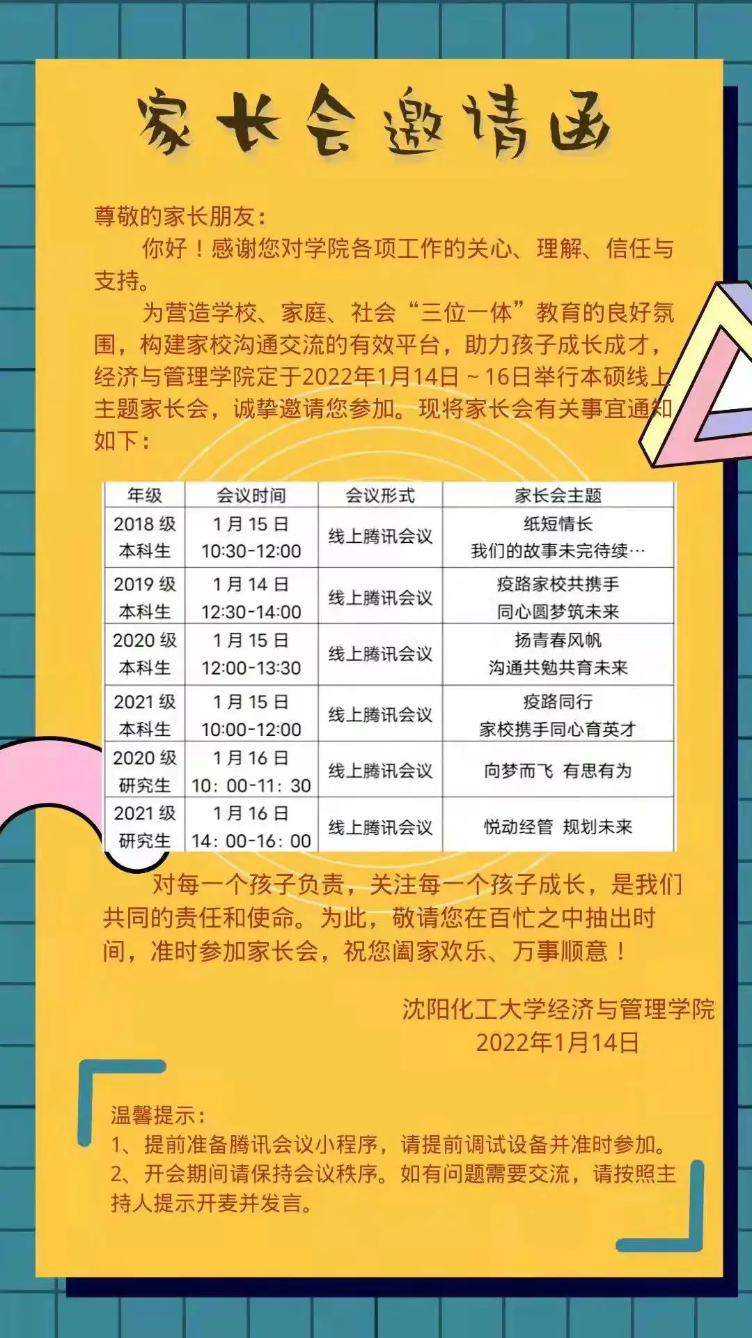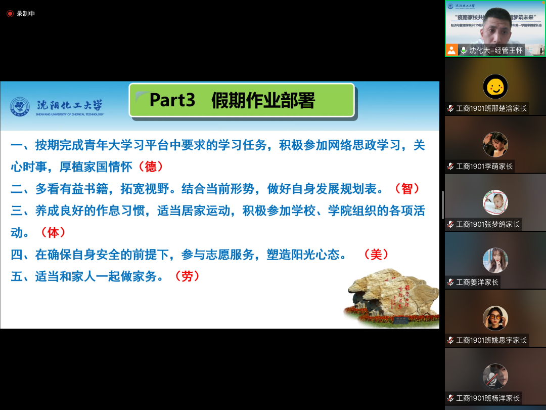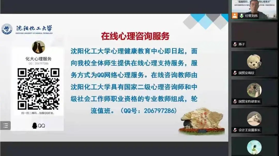 为进一步加强家校沟通,促进家校合作,2022年1月14日至16日,沈阳化工大学beat·365线上主题家长会正式开启,全国各地的1460个家庭,通过互联网齐聚“云”端。本次家长会由学院统一部署,制定线上家长会方案,突出年级和阶段特点,精心策划会议内容。