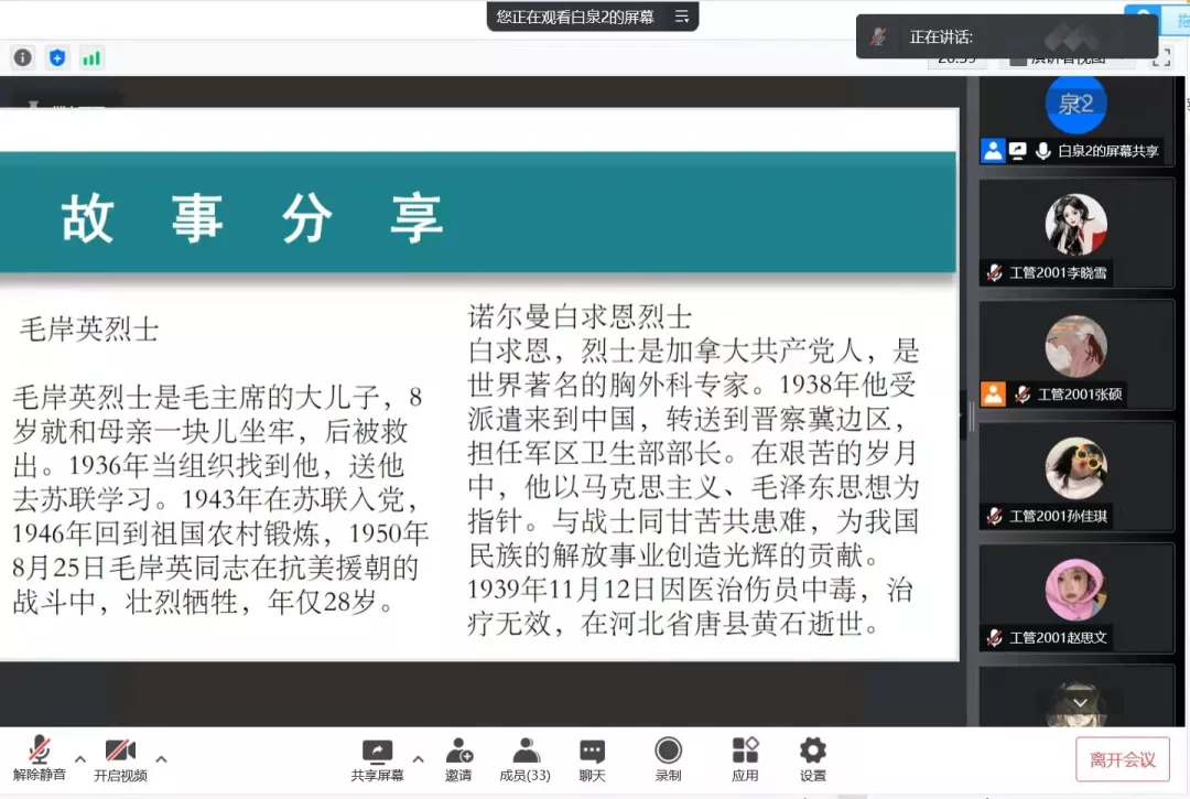 本次线上“云端祭英烈”主题团日活动通过讲授微团课、腾讯会议开展研讨交流、举办祭奠革命先烈、讲英雄事迹等方式,激励学生传承先烈遗志,弘扬革命精神,教育引导青年大学生厚植爱党、爱国、爱社会主义情感,自觉做弘扬伟大抗疫精神的时代先锋。