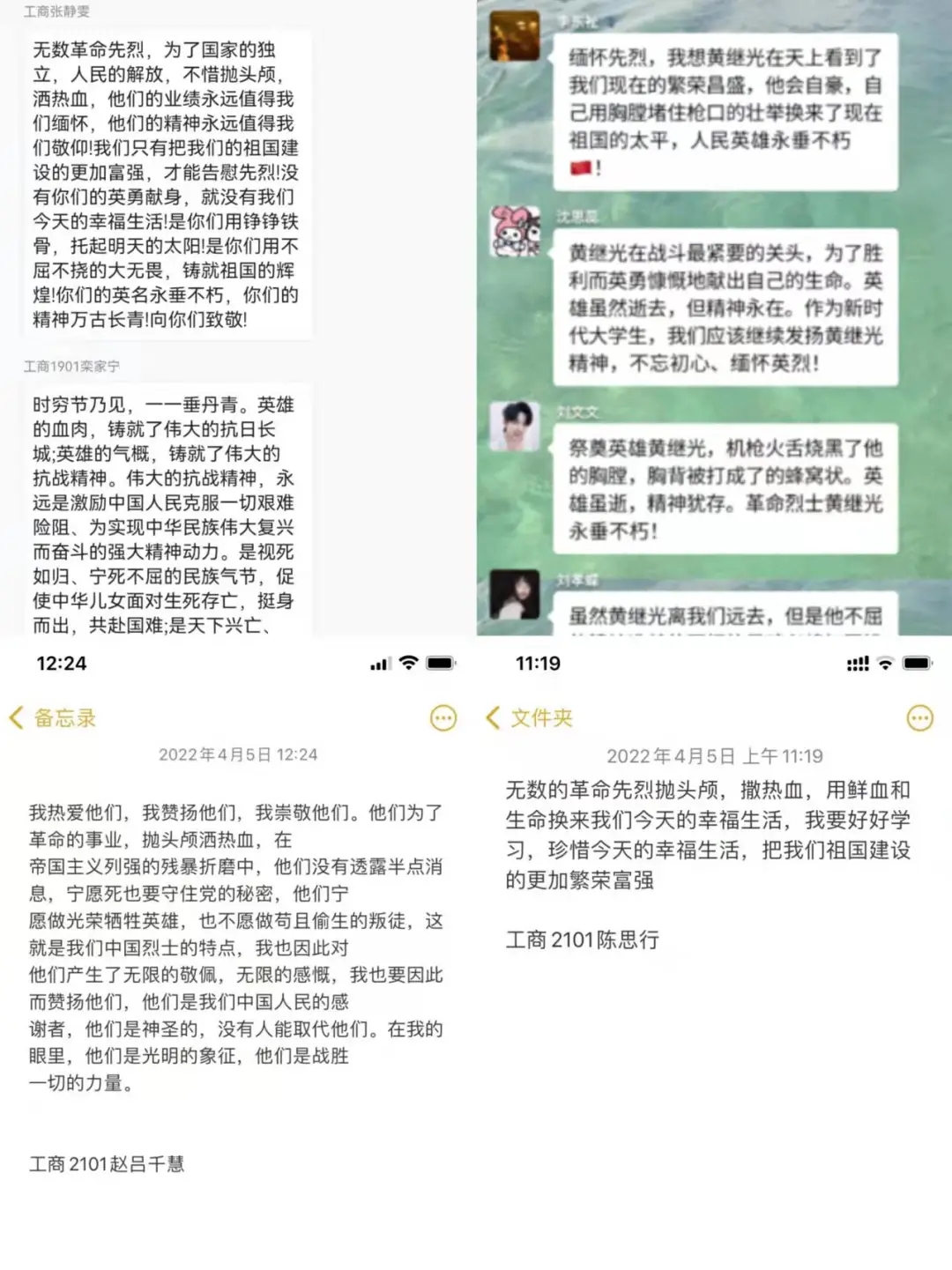 工商2101班岳怡宁同学也抒发了内心所想:“今天的幸福来之不易,在今后的学习中,我们将以革命先烈为榜样,秉承先烈遗志,刻苦学习,努力奋斗!”