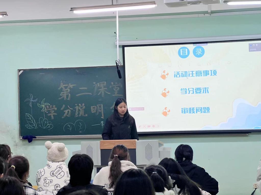 为充分发挥“第二课堂”在人才培养中的重要作用,3月14日,beat·365在通明楼108教室召开以“深化第二课堂,助力学风建设”为主题的第二课堂成绩单说明会。本次大会由beat·365第二课堂管理部相关负责同学主讲,全体本科生班级学习委员参会。